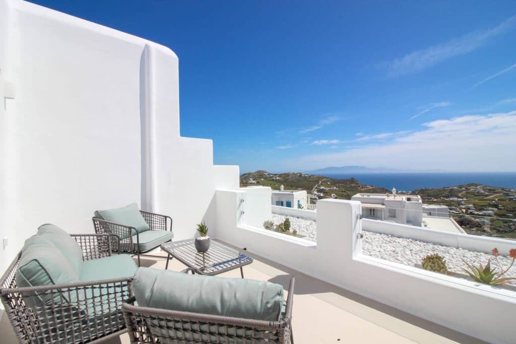 Απολαύστε τη θέα στη θάλασσα από τις σουίτες μας στο έπακρο! Κοιτάξτε το απέραντο γαλάζιο του Αιγαίου και απολαύστε το υπέροχο ηλιοβασίλεμα της Μυκόνου με τη φλογερή χρωματική του δόξα.