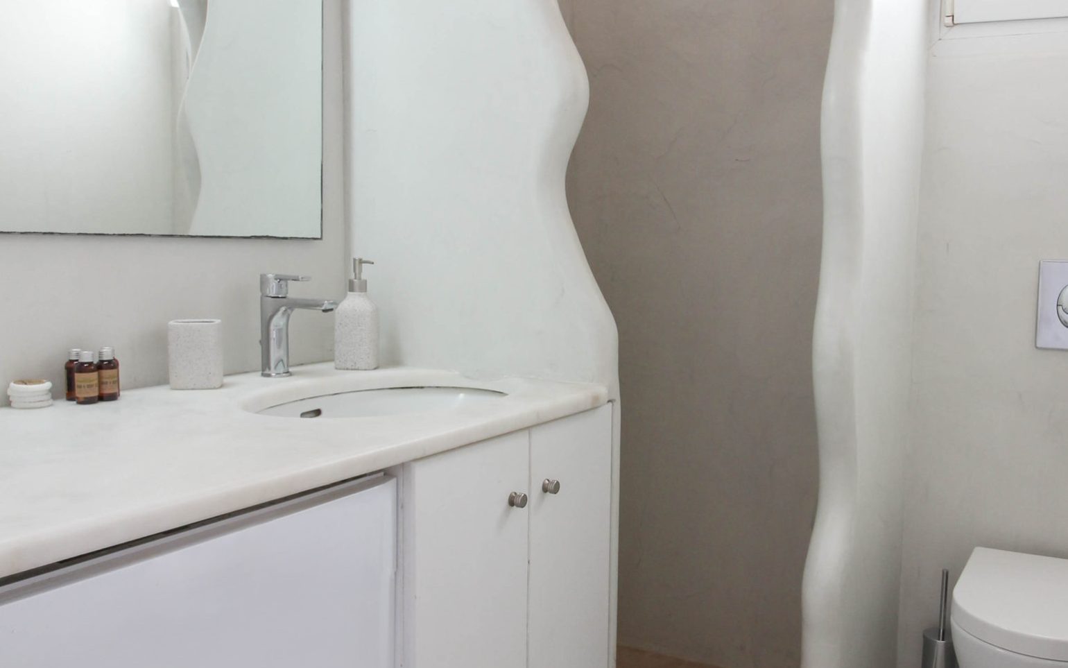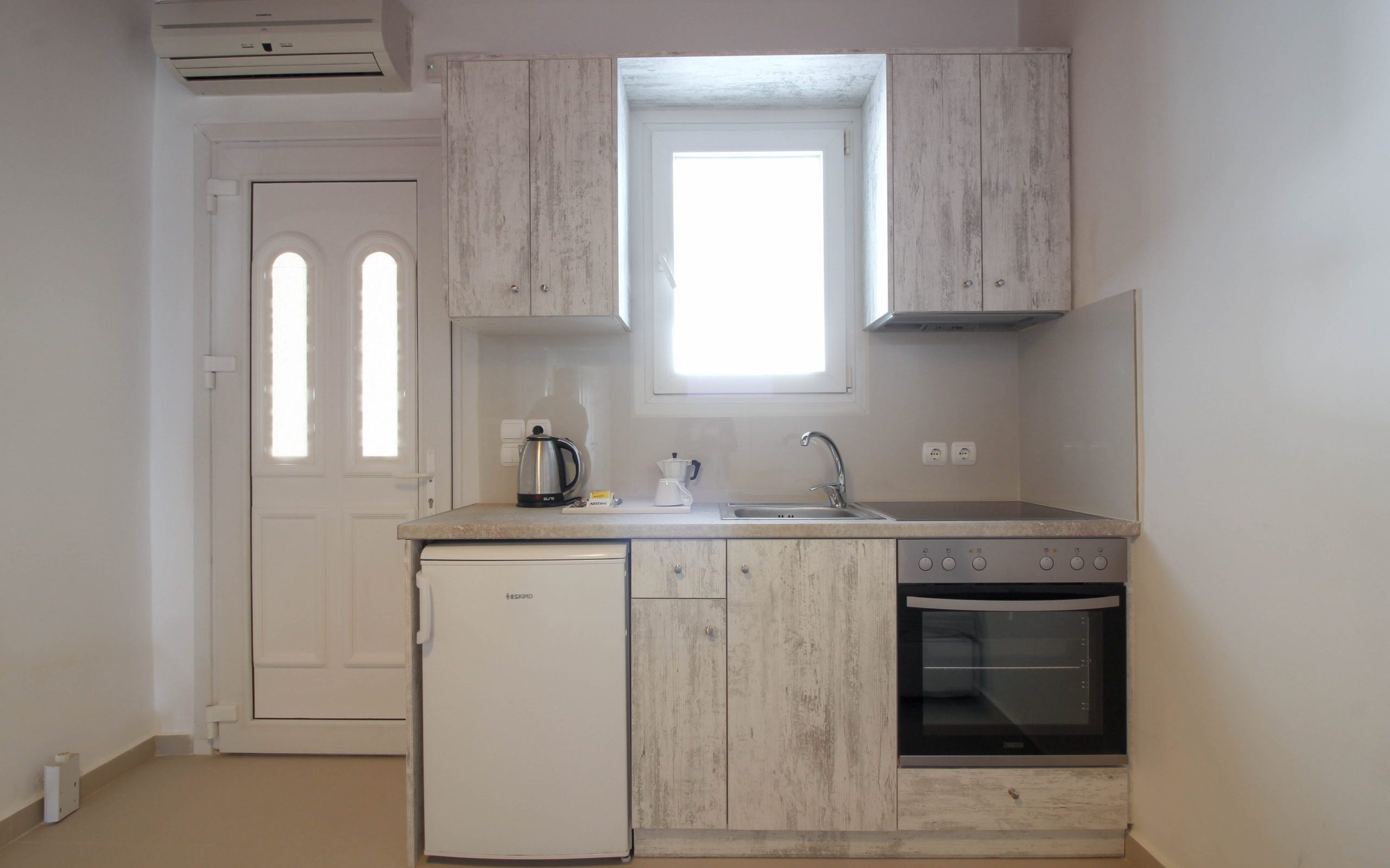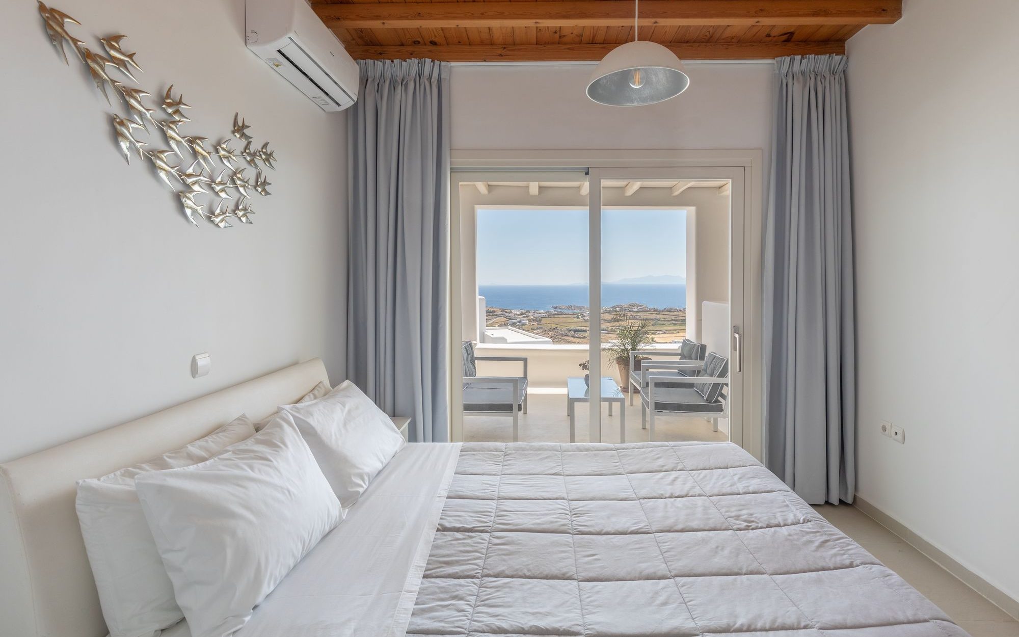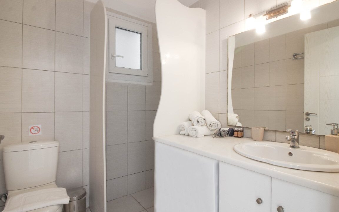 With Mykonian and Cycladic design touches in every corner, the One Bedroom Apartment welcomes guests to its comfortable interiors. The apartment includes a bedroom with access to the private terrace with breathtaking sea views, a fully equipped kitchen, and a living room with two sofas that convert into beds, making it an ideal choice for families or groups of 2–4 people.