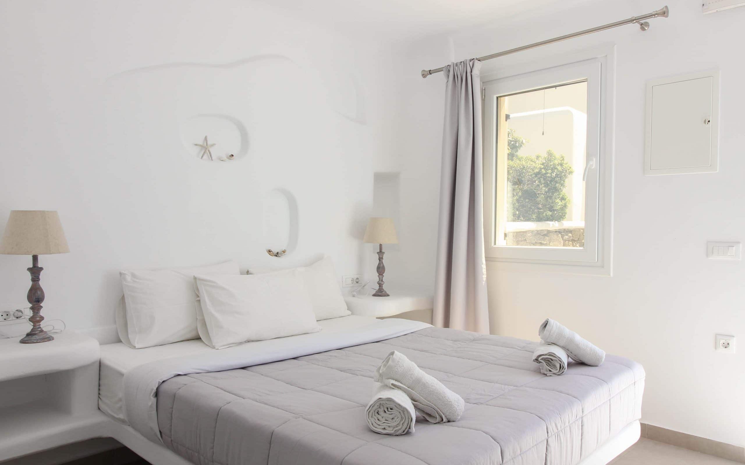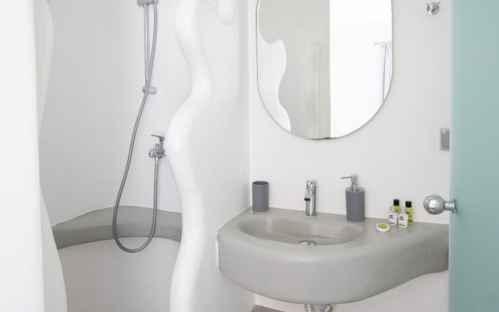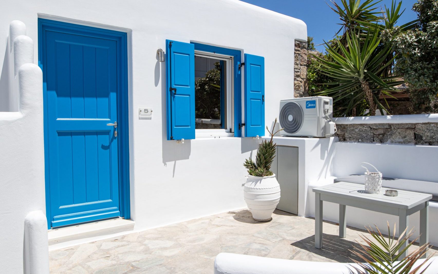 Predominant Cycladic design elements, like the striking white walls and the traditional built in bed, highlight the grandeur of simplicity and predict a truly unimaginable stay in a comfortable environment. The studio has a fully equipped kitchen and offers direct access to the complex’s courtyard. Ideal for couples.